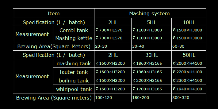 Brewhouse consists of two vessels creating one unit together with platform , staircase ,control panel , hot liquor tank , piping and plate wort cooler .Kettle ( the left tank ) has the following functions : mash mixing ,mashig and lautering , it is mashing and to separate the wort from grains ,the boilikng / Whirlpool tank ( the left tank ) can be as the whirlpool and boiling function . The brewhouse can brew the beer 3 time maximumly , which can save the time .