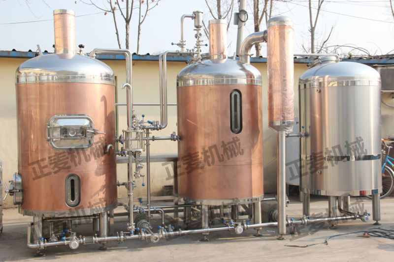 糖化系統是由糖化煮沸鍋、過濾槽、漩渦沉淀槽及工藝管道組成;糖化煮沸鍋為“蒸汽加熱式;電加熱式;燃氣加熱式”組成。罐體為雙層保溫方式“巖棉或聚氨酯”材料。加熱面積足夠達到麥汁煮沸蒸發量,能夠有效阻止熱能耗的外泄。罐體內部采用國際標準不銹鋼精加工而成;外部采用不銹鋼或紫銅鏡面板組成,古樸典雅的外觀造型;即釀出美妙佳釀還有藝術品的象征。糖化煮沸鍋頂部加裝攪拌系統能使醪液均勻糖化;過濾槽頂部加裝耕刀系統保證醪液勻速過濾避免氧化。漩渦沉淀系統;采用切線及離心力的作用能夠徹底的分離出多余的蛋白質及雜質,達到成熟麥汁的純凈度。