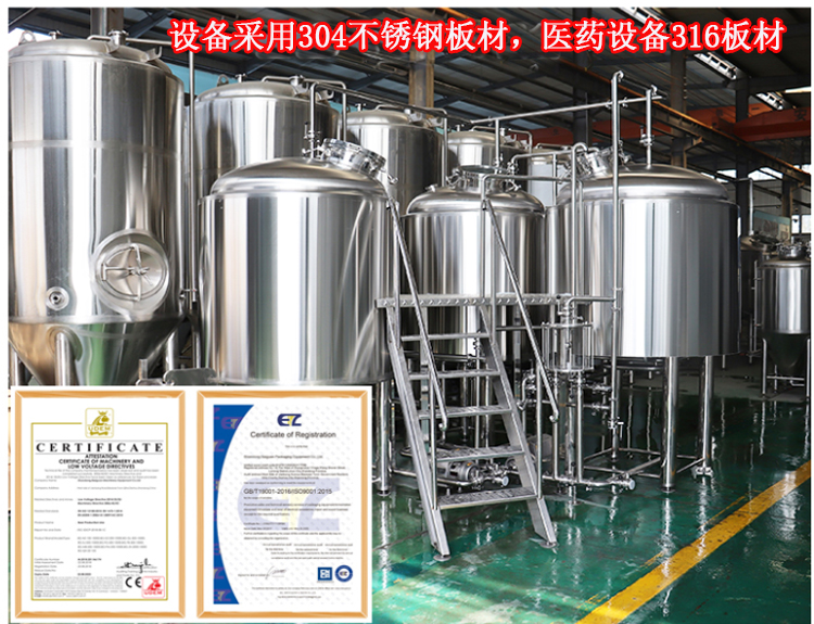 糖化系統(tǒng)是由糖化煮沸鍋、過濾槽、漩渦沉淀槽及工藝管道組成;糖化煮沸鍋為“蒸汽加熱式;電加熱式;燃氣加熱式”組成。罐體為雙層保溫方式“巖棉或聚氨酯”材料。加熱面積足夠達到麥汁煮沸蒸發(fā)量,能夠有效阻止熱能耗的外泄。罐體內(nèi)部采用國際標準不銹鋼精加工而成;外部采用不銹鋼或紫銅鏡面板組成,古樸典雅的外觀造型;即釀出美妙佳釀還有藝術(shù)品的象征。糖化煮沸鍋頂部加裝攪拌系統(tǒng)能使醪液均勻糖化;過濾槽頂部加裝耕刀系統(tǒng)保證醪液勻速過濾避免氧化。漩渦沉淀系統(tǒng);采用切線及離心力的作用能夠徹底的分離出多余的蛋白質(zhì)及雜質(zhì),達到成熟麥汁的純凈度。