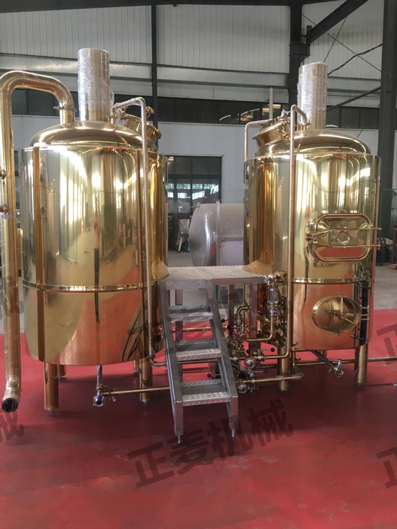 糖化系統(tǒng)是由糖化煮沸鍋、過濾槽、漩渦沉淀槽及工藝管道組成;糖化煮沸鍋為“蒸汽加熱式;電加熱式;燃氣加熱式”組成。罐體為雙層保溫方式“巖棉或聚氨酯”材料。加熱面積足夠達到麥汁煮沸蒸發(fā)量,能夠有效阻止熱能耗的外泄。罐體內(nèi)部采用國際標準不銹鋼精加工而成;外部采用不銹鋼或紫銅鏡面板組成,古樸典雅的外觀造型;即釀出美妙佳釀還有藝術(shù)品的象征。糖化煮沸鍋頂部加裝攪拌系統(tǒng)能使醪液均勻糖化;過濾槽頂部加裝耕刀系統(tǒng)保證醪液勻速過濾避免氧化。漩渦沉淀系統(tǒng);采用切線及離心力的作用能夠徹底的分離出多余的蛋白質(zhì)及雜質(zhì),達到成熟麥汁的純凈度。