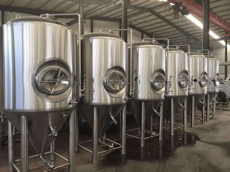 啤酒發(fā)酵系統(tǒng)有發(fā)酵罐、清酒罐、暫存罐組成;發(fā)酵是啤酒生產(chǎn)中極其重要的工藝過(guò)程。是一個(gè)有酵母參與的復(fù)雜的生化反應(yīng)過(guò)程,發(fā)酵罐為錐底圓柱形,罐體具備自身冷卻裝置,可很容易地控制發(fā)酵溫度;罐底為錐形,回收酵母及清洗都很方便;罐體具有CIP清洗系統(tǒng),保證了生產(chǎn)中的衛(wèi)生安全。具備了先進(jìn)的國(guó)際發(fā)酵工程技術(shù),可采用PLC自動(dòng)控溫技術(shù)。全過(guò)程控制啤酒發(fā)酵。