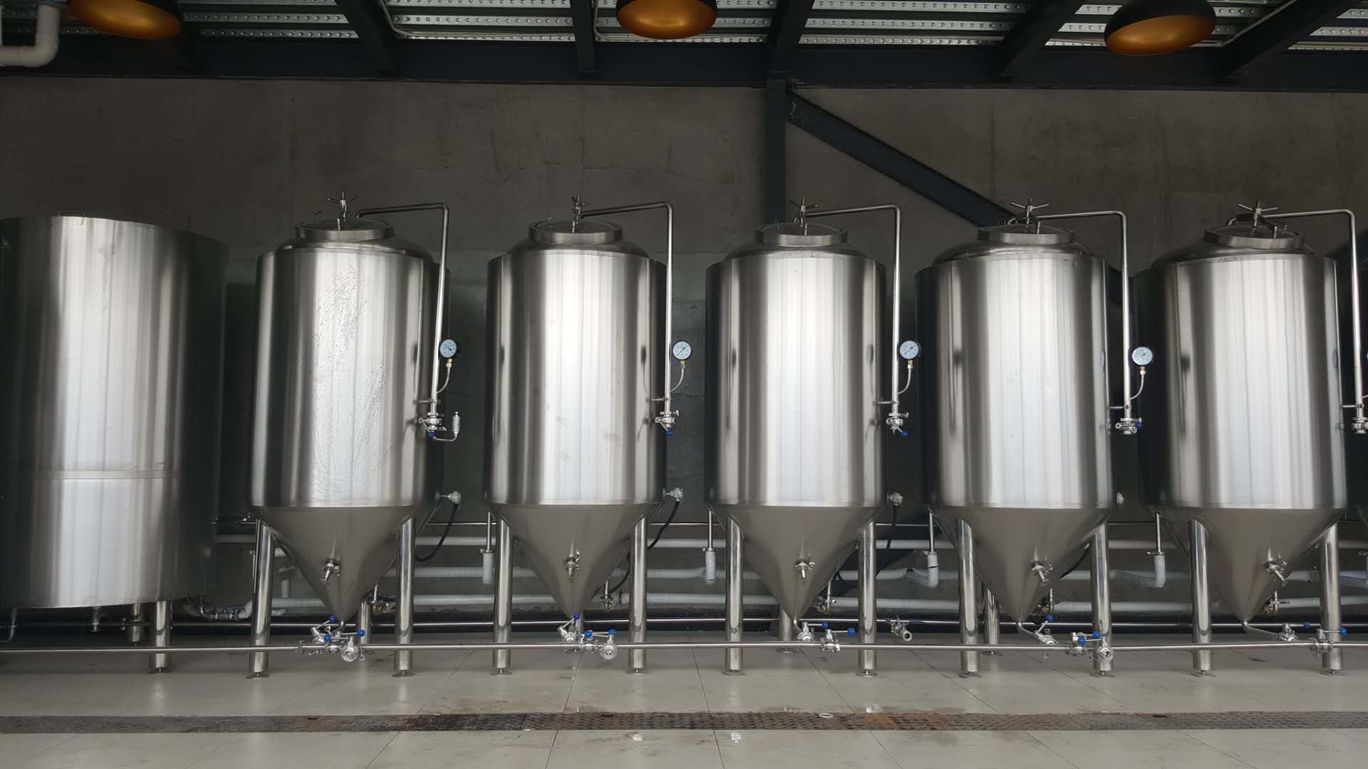 啤酒發酵系統有發酵罐、清酒罐、暫存罐組成;發酵是啤酒生產中極其重要的工藝過程。是一個有酵母參與的復雜的生化反應過程,發酵罐為錐底圓柱形,罐體具備自身冷卻裝置,可很容易地控制發酵溫度;罐底為錐形,回收酵母及清洗都很方便;罐體具有CIP清洗系統,保證了生產中的衛生安全。具備了先進的國際發酵工程技術,可采用PLC自動控溫技術。全過程控制啤酒發酵。