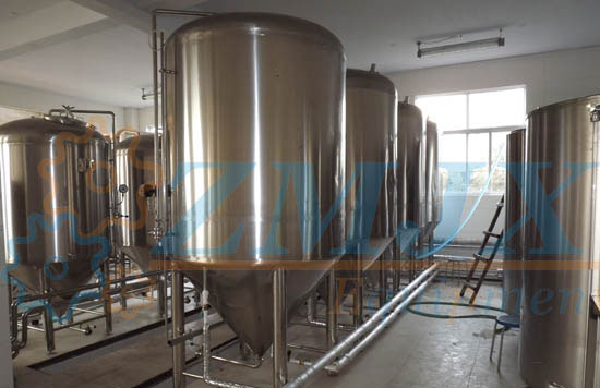 啤酒發酵系統有發酵罐、清酒罐、暫存罐組成;發酵是啤酒生產中極其重要的工藝過程。是一個有酵母參與的復雜的生化反應過程,發酵罐為錐底圓柱形,罐體具備自身冷卻裝置,可很容易地控制發酵溫度;罐底為錐形,回收酵母及清洗都很方便;罐體具有CIP清洗系統,保證了生產中的衛生安全。具備了先進的國際發酵工程技術,可采用PLC自動控溫技術。全過程控制啤酒發酵。