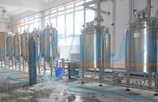 啤酒發酵系統有發酵罐、清酒罐、暫存罐組成;發酵是啤酒生產中極其重要的工藝過程。是一個有酵母參與的復雜的生化反應過程,發酵罐為錐底圓柱形,罐體具備自身冷卻裝置,可很容易地控制發酵溫度;罐底為錐形,回收酵母及清洗都很方便;罐體具有CIP清洗系統,保證了生產中的衛生安全。具備了先進的國際發酵工程技術,可采用PLC自動控溫技術。全過程控制啤酒發酵。